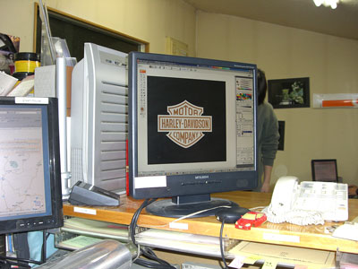 そんな中今お預かりしているハーレーのタンクのステッカーの打ち合わせにお客様がやってきました。