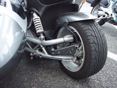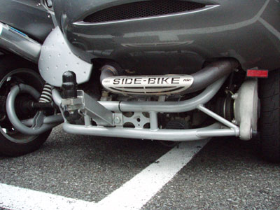 この辺の機構は、現在Madsystemsでも開発中です。日本のサイドカーってどうしても二輪の呪縛から逃れられないようなイメージを受けてしまいますが、そこはマッド氏、4輪の開発に携わっているだけあって4輪側からのアプローチをしてサイドカーというよりは3輪の乗り物としてとらえている。しかもサイドカーの面白さも知っている氏ならではの発想が楽しみですね。