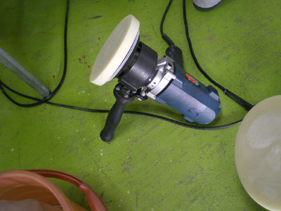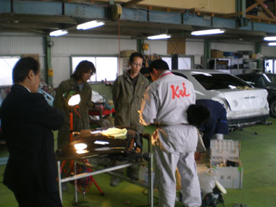 で、最近車の磨きについていろいろ悩むことがあって、ケイテックという磨きの工具を開発している会社の社長さんに来ていただき、ちょっとしたデモをやっていただきました。