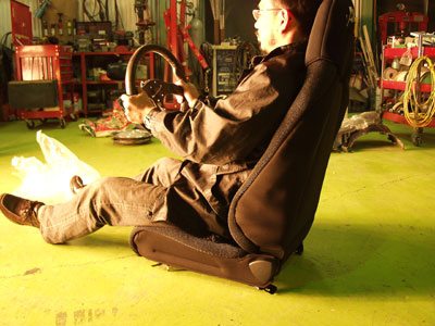 テストドライバーでもある彼のドライブでもうテールが出るんではないかというぐらいのGをいきなりかけられたのですが、シートがちゃんと支えてくれて、じぶんが踏ん張る感じはほとんどなし。本当に不思議なシートです。